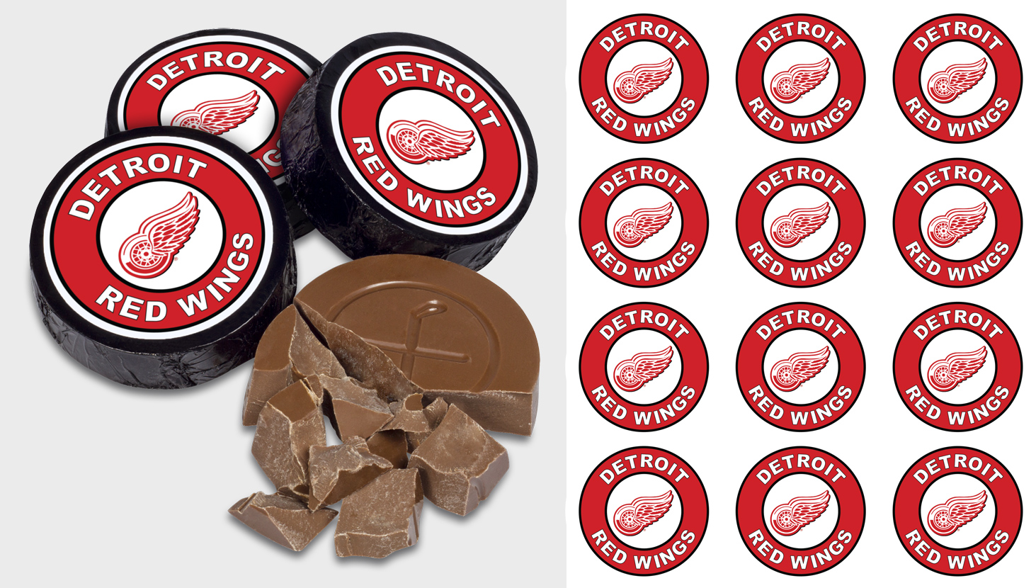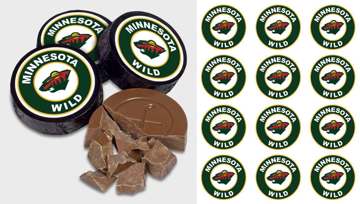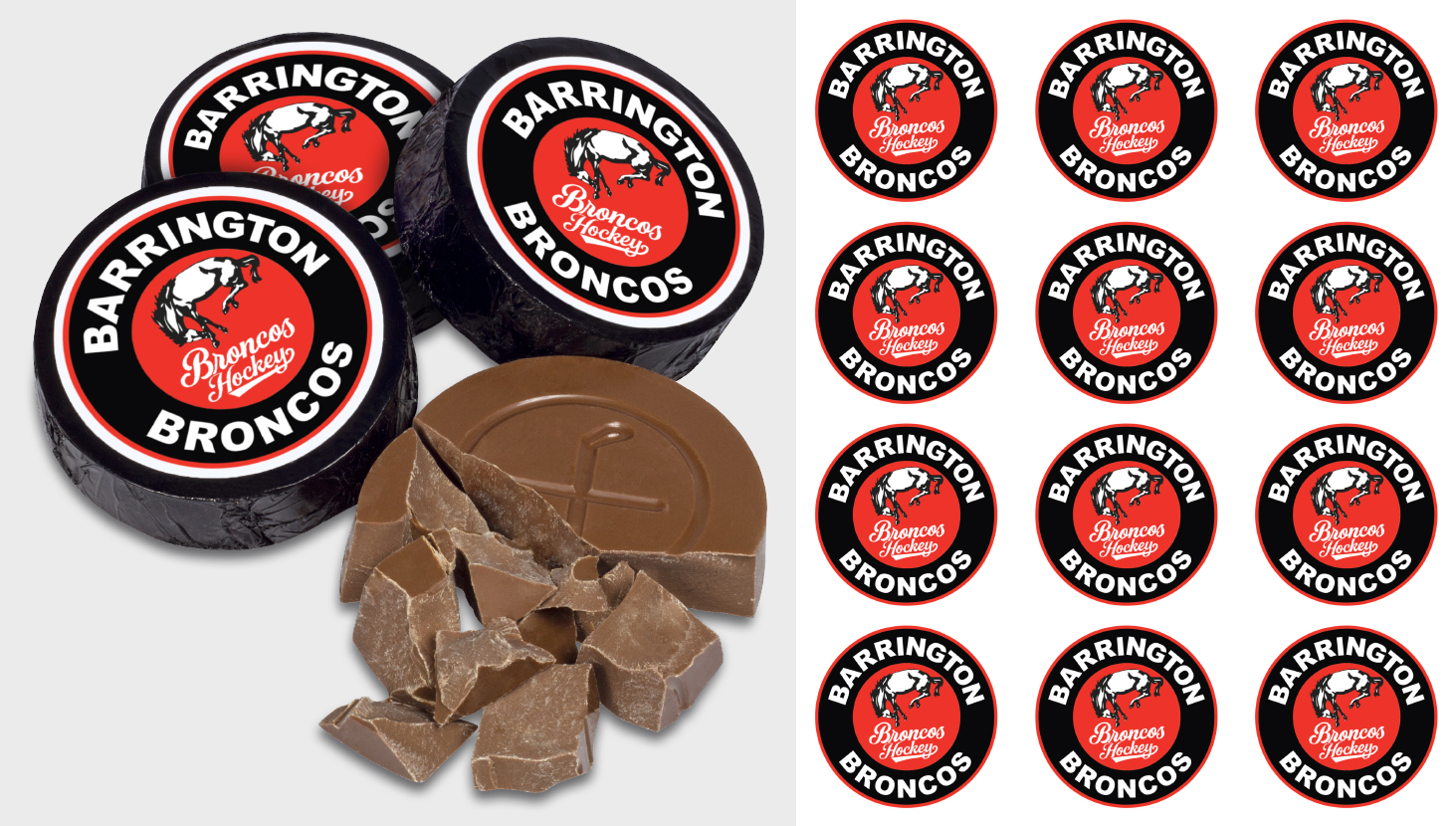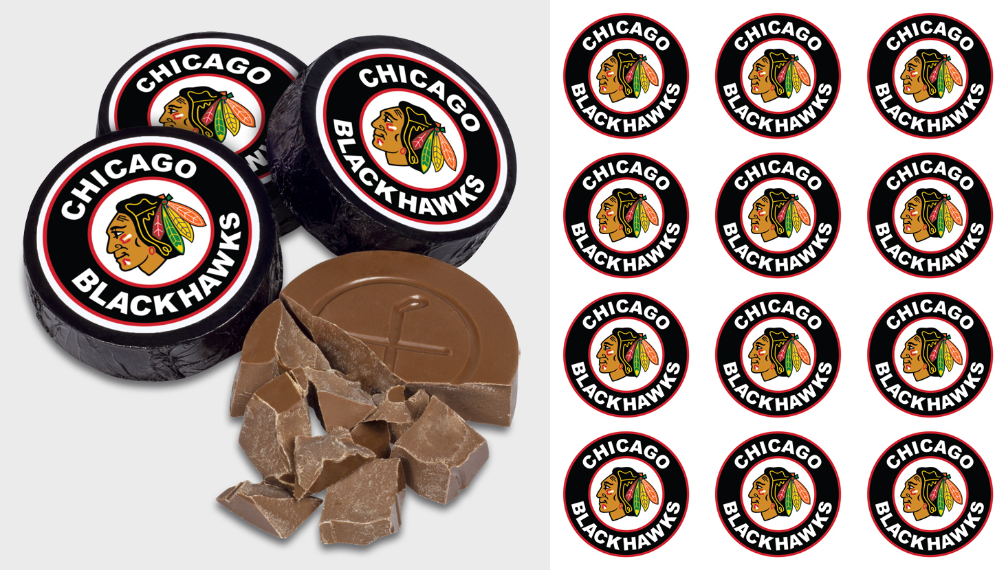 Summary: NHL Franchise owners order these chocolate hockey pucks to serve at their team events and as gifts. It was necessary to create NHL team labels for each franchise and print the labels in-house for short runs. Available in the store during hockey season and online.