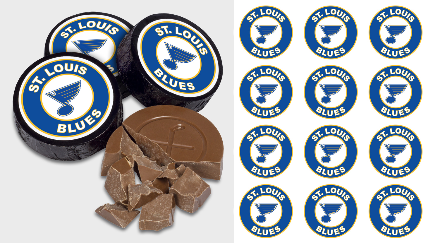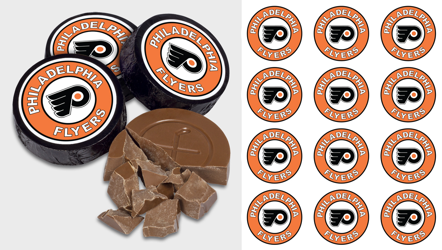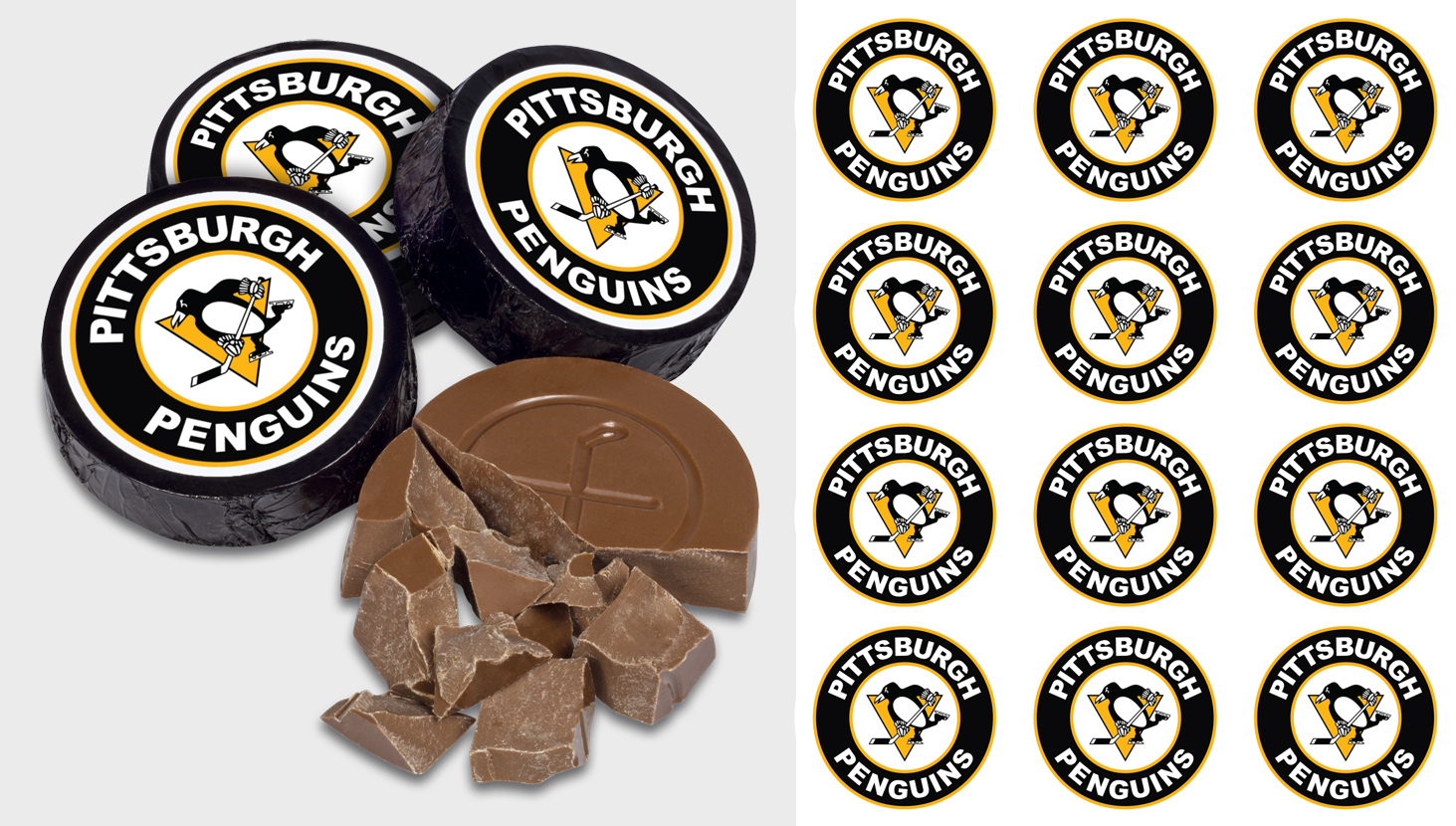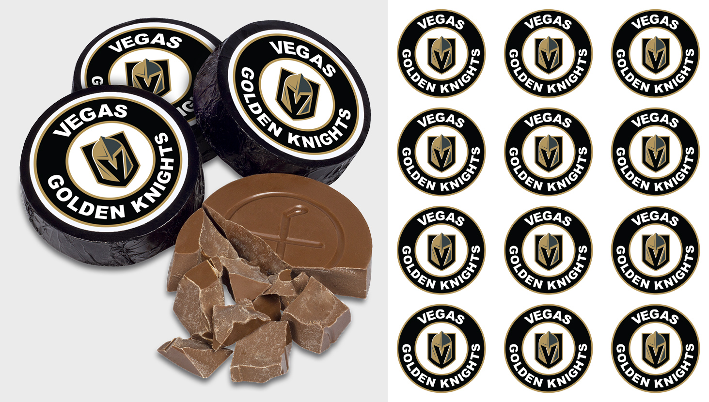 Summary: NHL Franchise owners order these chocolate hockey pucks to serve at their team events and as gifts. It was necessary to create NHL team labels for each franchise and print the labels in-house for short runs. Available in the store during hockey season and online.