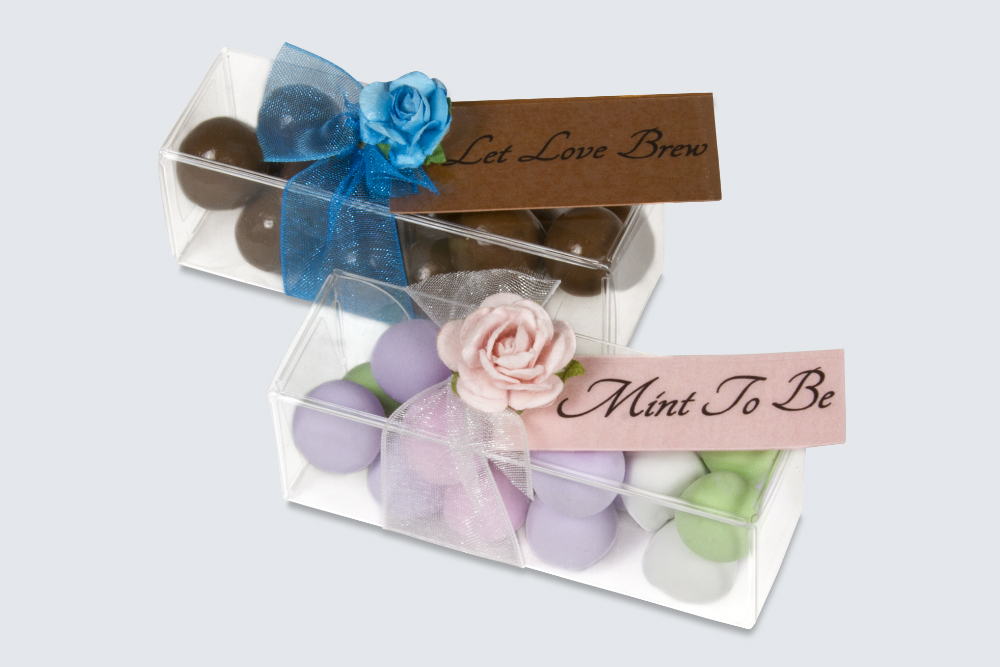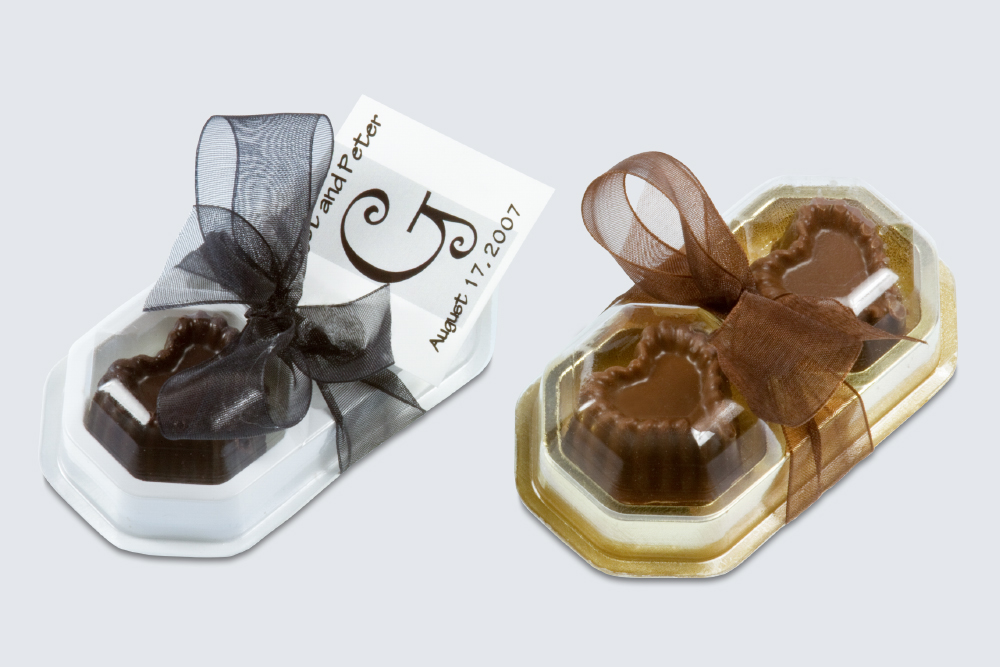 Summary: In these modern times, couples are searching for unique wedding favors to give to their special guests to say thank you for sharing their special day. I’ve been to a few weddings recently where I’ve taken home garden seeds and some handmade bath soap both attractively wrapped in the hues of the chosen wedding palette. I planted the garden seeds; used the soap, which really smelled good and watched the flowers grow all while remembering the couple who gave them to me. It’s really amazing how many different wedding favor ideas exist today to satisfy the novel cravings of couples preparing for their big day. If you’re looking for a timeless wedding favor to truly satisfy your wedding guests you can’t go wrong with classic handmade premium chocolate. Morkes Chocolates offers a variety of chocolate wedding favors, personalized in your color preferences. From Morkes' Mint French Silk and delicious truffles to white chocolate covered popcorn the choices are endless. And for destination weddings the chocolate shell, palm tree and rocks are a perfect complimnet. If you’re looking for something more novel how about chocolate covered fortune cookies or a chocolate martini glass filled with chocolates of your choice. There’s even bride and groom chocolate covered marshmallows and pretzel rods. And for something really special how about their Bride and Groom Chocolate Covered Caramel Apples made with their homemade delectable caramel. Morkes Chocolates wedding favors will not only look attractive on your place settings, they will leave a lasting impression on your guests once they take their first bite.